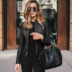 Vis din stil og selvtillid med denne elegante og alsidige bikerjakke med lynlås til kvinder.